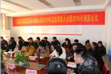2016年2月2日,公司全体员工齐聚三楼会议室,隆重召开安徽华源聚源医药有限公司2015年总结大会暨2016年预算会议,参加会议的领导有:公司总经理张宝军、质量副总张冬枫、副总经理兼财务经理董治朝、太和分公司张保坤经理、医院托管部赵匀锋经理,以及各职能部门负责人,在会议上,各部门负责人就2015年工作进行了总结与汇报,同时结合公司2016年的战略目标,就新的一年具体行动计划和预算目标进行了详细的阐述。张总代表公司对过去的一年进行了总结,对于取得的成绩给予充分的肯定,对存在的问题与不足进行了分析,为公司2016年做了战略布局和明确指示,最后张总与各部门负责人现场签订了年度目标承诺书。同时要求大家齐心协力,继续发扬顽强拼搏、开拓创新的精神,为全面完成2016的各项工作而努力奋斗!