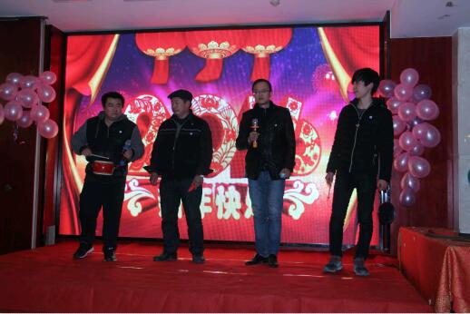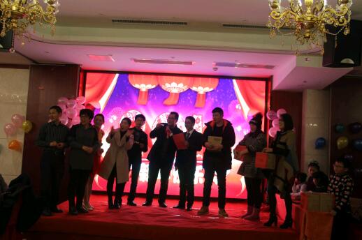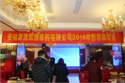 2016年2月4日下午,飞龙大酒店三楼宴会大厅到处张灯结彩、喜气洋洋,安徽华源聚源医药有限公司2016年新春联欢会隆重举办,参加会议的领导和嘉宾有:公司总经理张宝军、质量副总张冬枫、副总经理兼财务经理董治朝、太和分公司张保坤经理、医院托管部赵匀锋经理、各职能部门负责人,汇创宜医疗科技有限公司包经理、爱普益医学检测中心程总、以及公司部分重点客户等,与全体员工共聚一堂,会议首先对公司2015年整体工作进行了总结,总经理张宝军指出:2015年是不平凡的一年,在克服各种不利因素的前提下,在全体聚源人的共同努力下,我们取得了可喜的成绩,在诸多方面均实现了突破,但同时,我们也要清醒的看到,工作中还存在许多不足之处,这是2016年我们着重要解决和提升的,希望大家在2016年要解放思想、转变观念,不断开拓创新,努力拼搏,向着更高的目标勇往直前!会上对2015年各方面表现优秀的员工、干部进行了表彰;